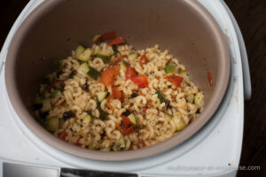 Coquillettes au multicuiseur : origan, tomates, champignons et courgette Coquillettes au multicuiseur : origan, tomates, champignons et courgette