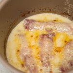 Ajoutez la crème épaisse et les morilles dans la cuve, ainsi que 4 à 5 cuillères à soupe du lait de trempage. Attention à ne pas trop remuer votre bol de lait car il y aura probablement un peu de sable/terre au fond.