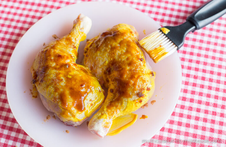 Pour cette recette j’ai utilisé la moutarde French’s que j’ai reçu dans mon dernier colis DegustaBox car je voulais la tester en cuisson. C’est une moutarde légèrement sucrée comme on en trouve aux US ou en Allemagne pour les hot-dogs, très forte en goût. Elle est relativement piquante, mais à la cuisson toutes les moutardes perdent de leur piquant, et son petit coté sucré allait parfaitement avec cette recette !