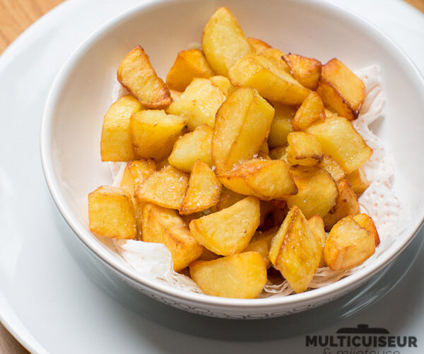 A noter que pour que les pommes de terre cuisent bien, il faut qu’elle touchent le fond de la cuve, donc vous ne pourrez pas faire sauter 3 kilos de patates dans votre multicuiseur, à moins de vous y prendre en 6 fois …