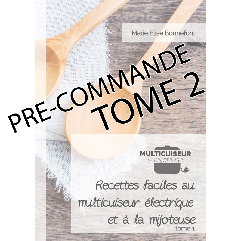 Suite au succès du tome 1 du livre « Recettes faciles au multicuiseur et mijoteuse » que vous pouvez commander ici, le tome 2 est en cours de finalisation. Il sortira à la fin de l’hiver. Vous pouvez dès à présent le pré-commander pour le recevoir dès sa sortie officielle, et ainsi économiser 5€ sur le prix du livre.