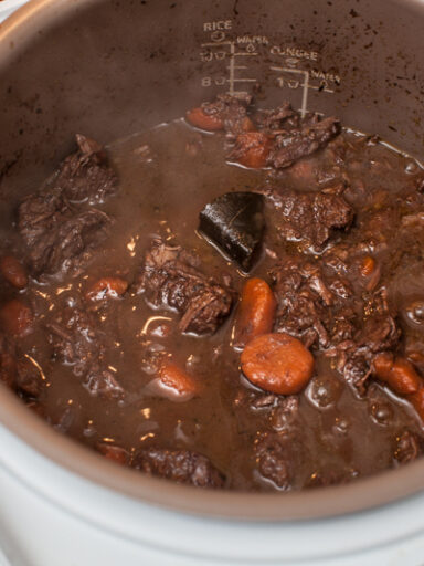 S’il reste trop de liquide, retirez le bouillon (sinon vous aurez une soupe et non pas une purée). Si vous avez un presse purée en plastique, vous pouvez l’utiliser directement dans la cuve du multicuiseur, sinon mettez les légumes dans un autre récipient avant de les écraser en purée. Goûtez avant de saler. Bon appétit !