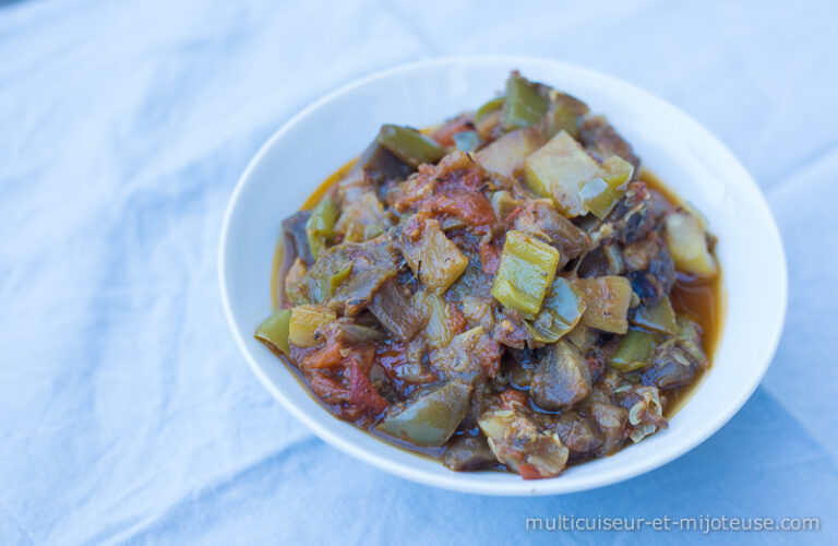 Faites cuire la ratatouille pendant 45 minutes à 1 heure dans votre multicuiseur avec le mode MIJOTER ou LEGUMES ou RATATOUILLE. Si vous utilisez une mijoteuse, la cuisson durera 3 heures en mode HIGH/FORT.