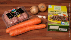 ingrédients pour la recette des saucisses-lentilles ingrédients pour la recette des saucisses-lentilles