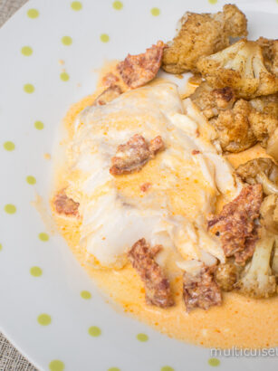 Ça vous dit de manger léger avant les fêtes ? Rien que de penser au réveillon de Noël ça me donne déjà mal au ventre ! Voici donc une recette légère au multicuiseur : du cabillaud mijoté à la crème et au chorizo, accompagné de chou-fleur sauté au paprika. Pour 2 personnes du dos de …